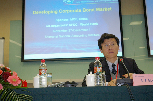 2006年11月27日至12月1日,由财政部主办、AFDC承办的“发展公司债券市场”国际研讨班在上海国家会计学院举行。共有来自12个经济体和国际机构的65位代表出席。来自中国、马来西亚、泰国、韩国、美国、俄罗斯、欧洲中央银行的政府官员以及来自国际清算银行的高级顾问和彭博社的专家,分别以主题演讲的形式,介绍了区域内公司债券市场的基本状况以及各经济体和地区在发行机制、定价、市场流动性、信息透明度、法律、监管等方面的最新情况。为增进各经济体代表对我国经济和证券市场发展的直观认识,除精心设计和安排主题发言外,此次培训还组织代表前往上海证券交易所等地实地参观。