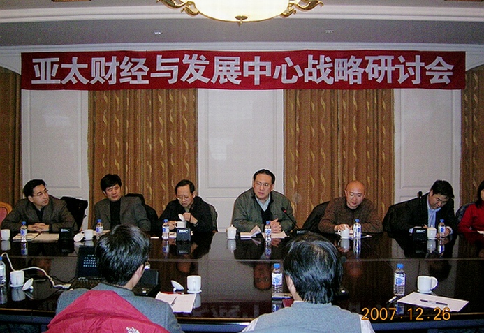 2007年12月26日,亚太财经与发展中心发展战略研讨会在吉林省吉林市举行。财政部国际司杨少林副司长、吴晋康副司长等财政部领导和海南财政厅吕勇副厅长等来自海南、吉林、广西、新疆、重庆、安徽、河南各地方财政部门的负责人参加了本次会议,AFDC主任暨上海国家会计学院院长夏大慰教授和李扣庆副主任、杨金林副主任等出席会议。