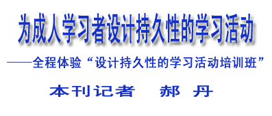 如果前三个阶段能圆满完成,到这个阶段,我们不会遇到太大的问题,以往的培训经验会帮很大的忙。但是,即使在这次培训的案例操练中,很多小组到这一步才意识到前面可能存在问题,所合成的培训项目被同伴或辅导老师找出缺憾,于是花费很多时间和精力去修改、完善……在实际的学习活动设计中,这是造成成本高、效率低的重要原因。但实际上,很少有人舍得浪费精力和财力,推翻前面不完美的设计。而即使设计的过程非常顺利、非常完善,能不能在实施当中得到完美的效果,也经常受制于培训机构领导的主观意识、机构的客观条件,特别是学习者的特点与愿望,等等多方面因素。这一点,本次培训的教师和学员们都深有同感。因此,培训师们提醒大家:学习活动设计的过程往往不允许我们按拟定模式所设置的最佳过程去操作,但一定要记住基本原则和总体的学习设计方法。这并不是无奈的妥协,只是为了在现实的情境中尽可能地达到设计的效果。