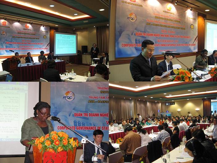 由亚太财经与发展中心(AFDC)和越南财政部财政干部学院(IFT)共同主办的“经济转型与国有企业的公司治理”国际研讨会11月29日在越南河内举行。来自越南财政部、计划投资部及越南主要国有企业高层管理人员,世界银行驻越南代表处、马来西亚经理人培训学院约150余人参加了此次研讨会。