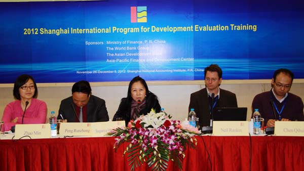 近年来,国际社会大力推行以结果为导向的公共部门管理,以提升政府部门的决策与资源分配能力。为帮助亚洲发展中国家建立结果导向的计划和预算体系,进一步提升公共部门管理能力, 2012年12月4日,由中国财政部和世界银行、亚洲开发银行以及亚太财经与发展中心共同主办的“SHIPDET影响评价与绩效预算专题培训”在上海国家会计学院正式拉开帷幕。中心彭润中处长、亚洲开发银行独立评价局高级评价专家Suganya Hutaserani女士以及授课专家南非Witwatersrand大学Neil Rankin副教授以及明尼苏达大学Chen Qihui博士出席了开幕式并分别致辞。
