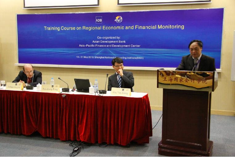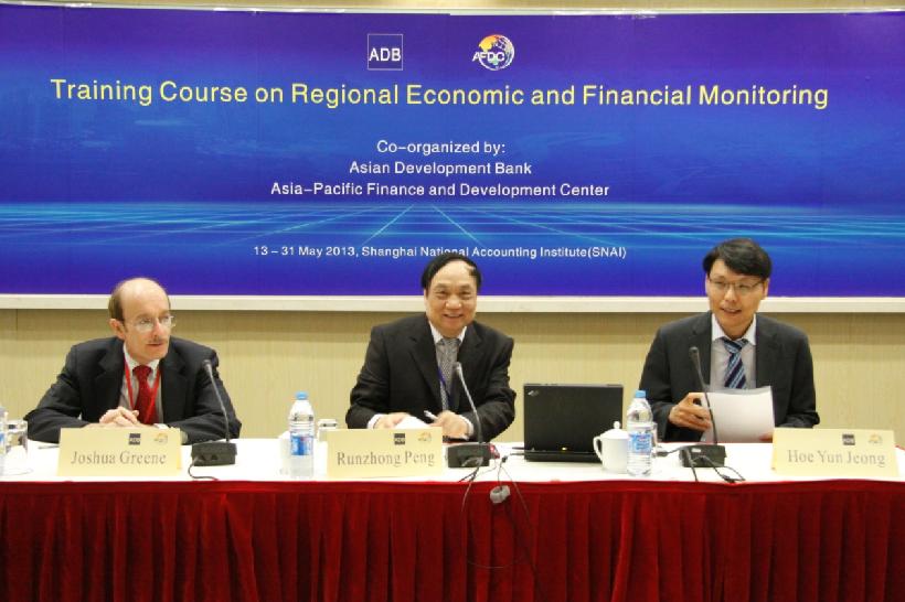 2013 年5 月13 日, 由亚太财经与发展中心(AFDC)和亚洲开发银行(ADB)联合举办的 “区域经济与金融监测”(REFM)国际培训班于我院正式拉开序幕。此次培训班为期三周,来自10+3 机制下的28名中高层政府官员参加该培训。 AFDC 彭润中处长、ADB 区域经济一体化局高级经济学家Hoe Yun Jeong 先生和Joshua Greene 教授出席开幕式并分别致辞。