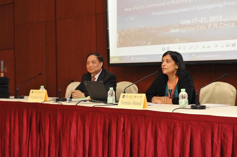 开幕式之后,Farzana女士即展开了本次培训的第一讲,向学员们介绍了以结果为导向的公共部门管理的基本框架。随后的第二讲则由来自广东省财政厅国际债务办的曹玉英副主任对广东省国际金融组织贷款项目绩效评价工作作相关报告,作为实施项目绩效评价和预算管理最领先的省份,曹主任的报告激起了学员们很大的热情与兴趣,各国学员们争相提问,反响热烈。
