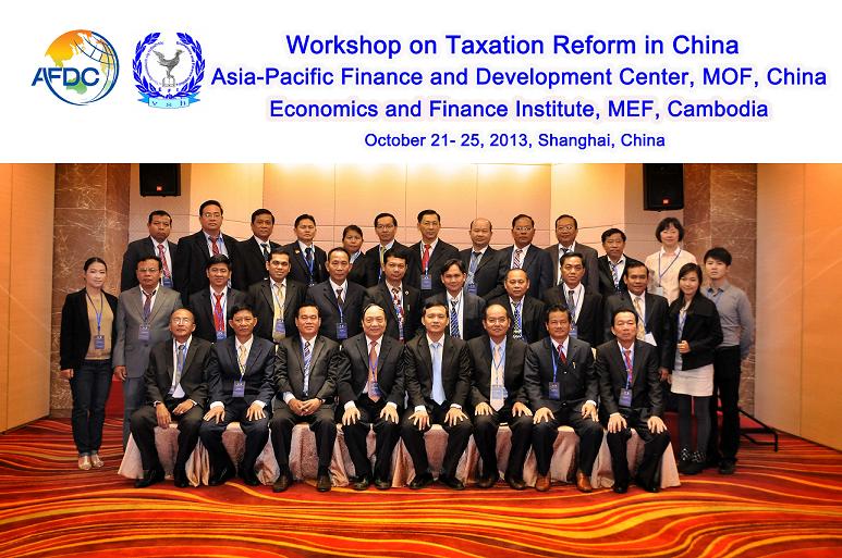 2013年10月21日至25日,由中国财政部亚太财经与发展中心(AFDC)和柬埔寨经济财政部经济财政学院(EFI)共同主办的“中国税制改革国际培训”研讨会在上海顺利举行。此次为期5天的研讨会,共有来自中柬两国的33名代表及专家参加。