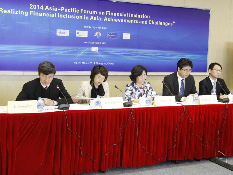 3月19-20日,由亚太财经与发展中心(AFDC)、亚太经合组织工商咨询理事会(ABAC)、亚洲开发银行研究院(ADBI)以及澳大利亚发展合作基金(FDC)联合主办,由花旗集团基金会协办的2014年亚太地区普惠金融论坛在上海举行。上海国家会计学院院长、亚太财经与发展中心主任李扣庆教授主持了论坛开幕式,财政部国际司副司长郑权,ABAC中国代表、中国工商银行执行董事、副行长王丽丽、亚行研究院能力建设部主任邢予青、花旗银行(中国)副行长黄杰出席开幕式并致辞。
