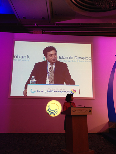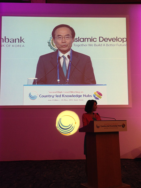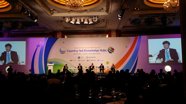 2014年6月23至26日,来自全球76个国家的500多名代表参加了由世界银行和韩国战略与财政部在首尔联合举办的全球第二届国家主导的知识中心高级别会议(HLM2),旨在促进相关机构在获取、分享发展经验方面的交流,提升知识分享的能力。受邀机构包括推动知识分享的政府部门、非政府组织、学术机构、智库和私营部门等。亚太财经与发展中心因会前入选优秀知识中心(Knowledge Hub Champion)应邀参加该会。