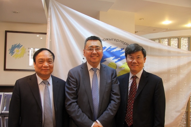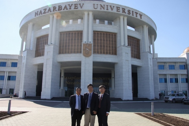5月26日,代表团一行拜访了纳扎尔巴耶夫大学,同纳扎尔巴耶夫大学校长胜茂夫进行了座谈。纳扎尔巴耶夫大学是哈最高学府,2010年9月正式开学,采用全英文授课,校址毗邻2017年阿斯塔纳世博园。校长胜茂夫曾任世界银行副行长。
