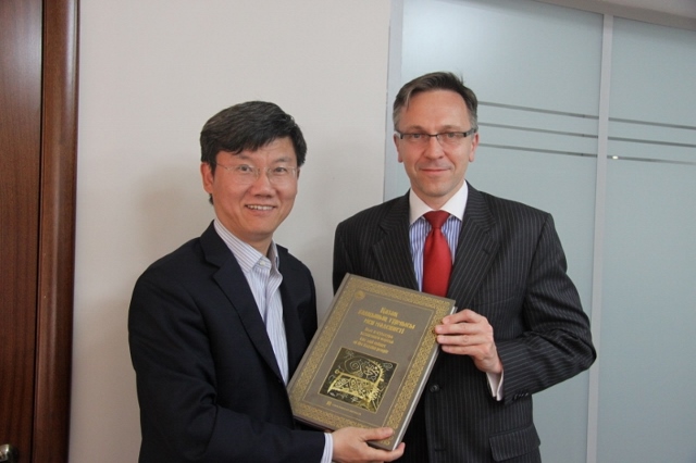 5月28日,代表团一行拜访了哈萨克斯坦金融机构协会(FIAK)。FIAK是哈萨克斯坦金融领域最大的院外集团,拥有15年历史。FIAK还是哈萨克斯坦著名的金融业非政府组织,其成员95%在各自领域拥有特许牌照。FIAK会长Askar Yelemessov接待了李扣庆院长一行。李扣庆院长首先介绍了此行的目的和上海国家会计学院(亚太财经与发展学院)的主要业务,表达了希望通过FIAK的渠道,协助两国财经交流水平的提升。Yelemessov会长欢迎来李扣庆院长的来访。他表示,FIAK非常乐意为两国的财经领域的交流和能力建设牵线搭桥,并建议,除了技术领域的培训,两国财经交流的重点还应该聚焦在彼此观念的碰撞和融合。李扣庆院长对Yelemessov的热情和坦诚表示感谢,并邀请Yelemessov访问上海国家会计学院(亚太财经与发展学院)。
