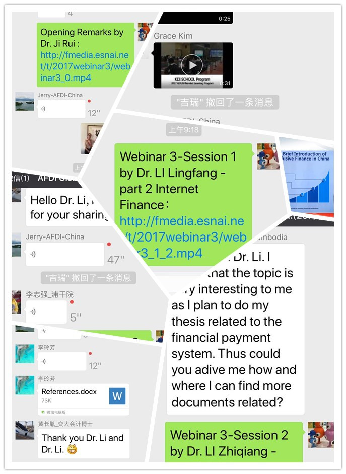 2017年SNAI/AFDI“金融全球化:开放、联通和创新”移动学习项目持续探索转型升级、知识分享新模式,通过“AFDI全球学习微信群”等渠道,将系列在线国际研讨会和高度互动的可持续知识交流相结合,深度挖掘中国、区域和全球财经与发展领域的热点,持续创新构建全球学习生态圈。