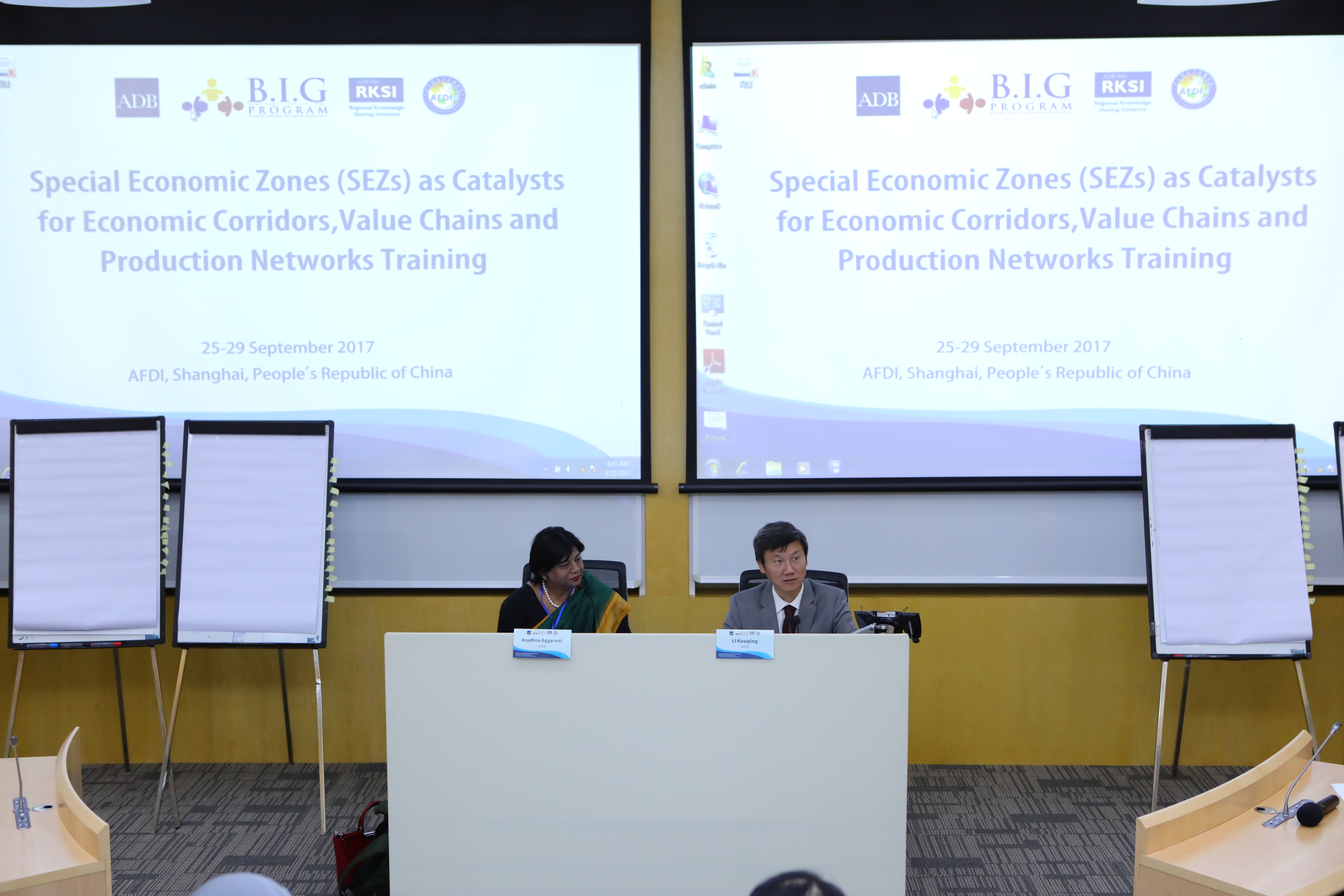 9月25日-9月29日,由亚太财经与发展学院(AFDI)与亚洲开发银行(ADB)联合主办的“经济特区与经济走廊”培训班在学院举行。上海国家会计学院(亚太财经与发展学院)党委书记、院长李扣庆教授和亚洲开发银行特聘专家、哥本哈根商学院Aradhna Aggarwal教授出席开幕式并致辞。来自中国及文莱、柬埔寨、印尼、马来西亚、菲律宾、泰国等东盟国家的29名中高层政府官员参加了本次培训。