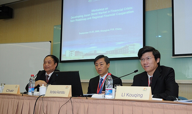 From 23-25 September 2009, a seminar on Developing the Asian Bond Market in Financial Crisis was held at the Shanghai National Accounting Institute (SNAI), sponsored by China’s Ministry of Finance, and co-organized by the Asia-Pacific Finance and Development Center and the Asian Development Bank. About 40 participants from the Ministry of Finance, central bank, and securities regulatory bodies of Cambodia, Burma, Vietnam, Laos, Thailand, Malaysia, and China and officials from the Asian Development Bank (ADB) and International Monetary Fund attended the seminar in Shanghai. Participants located in Mongolia and Sri Lanka also joined the seminar via the video conference system provided by the World Bank’s Global Development Learning Network.