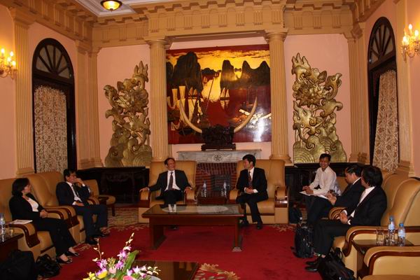 In the meeting, Mr. Nguyen briefed the delegation on the development in agriculture and rural area in Vietnam. He said that Vietnam is now working hard to learn Chinese experience in dealing with agricultural, farmer and rural issues. He himself had been to some rural area of China ten years ago for the issue of agriculture and rural area. Since 1991, the Vietnamese government has been exerting more efforts to develop its agriculture and rural area. Mr. Nguyen also pointed out that it may not be proper for the central government to provide all finance for agricultural and rural development. The Vietnamese government is now considering encouraging central government, local government and individual farmers to share responsibility to provide the finance. Mr. Nguyen mentioned that the farmers are the weakest group in almost any country and Vietnam is eager to learn Chinese experience in using fiscal policies to support agriculture, farmers and rural development.