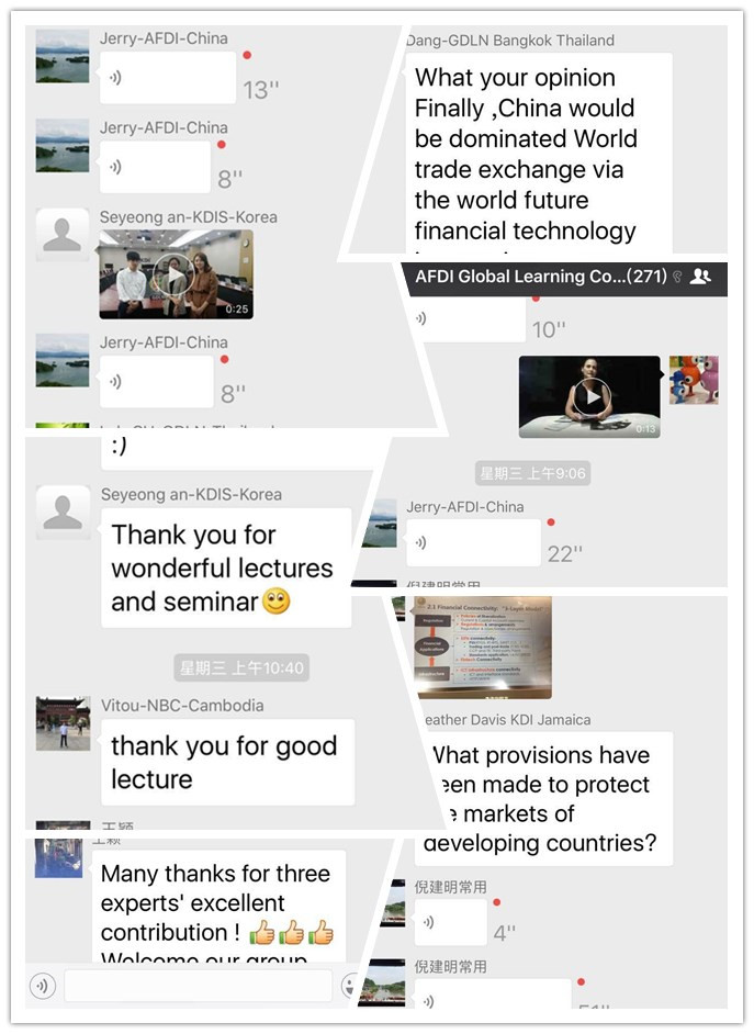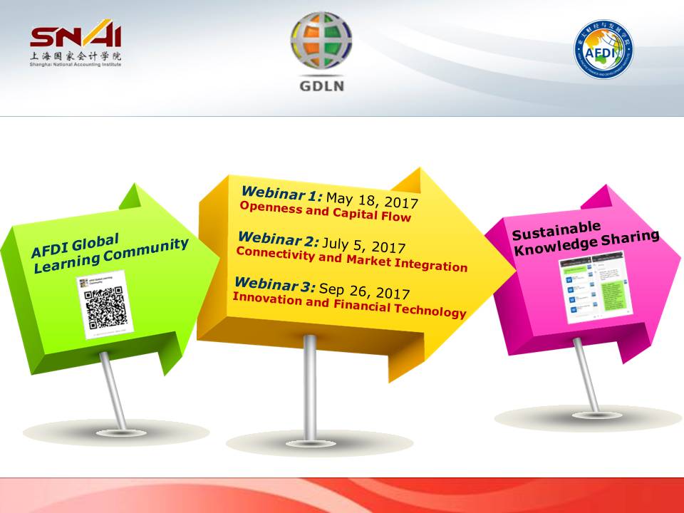 In order to explore an innovative way of knowledge sharing, 2017 AFDI-GDLN Global Learning Program- “Financial Globalization: Openness, Connectivity and Innovation”combining Mobile Learning Community with GDLN Webinarsand Sustainable Knowledge Sharing,to seek hotspots in the field of finance and developmentin China, regional and global, and to build a knowledge sharing ecosystem boundaryless and full of possibilities and potential.