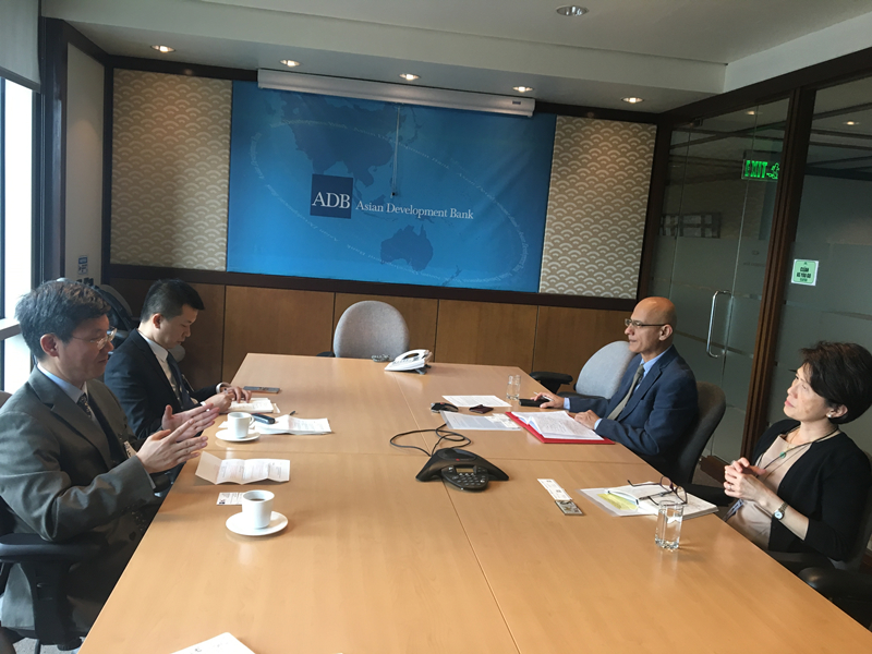 16 meetings were held during the three-day tight schedule visit. President Li along with delegation had visited Mr. Zhang Wencai, Vice President of ADB, and Mr. Cheng Zhijun, Board of Director of PR. China in ADB. In addition, the delegation held meetings with East Asian Department, Independent Evaluation Department, Southeast Asia Department, South Asia Department, Central and Western Asia Department, Economic Research and Regional Cooperation Department, Sustainable Development and Climate Change Department and other departments respectively. During the meetings, AFDI delegation and ADB’s departments reviewed the progress of cooperation in terms of regional knowledge sharing and capacity-building in 2017, and reached a consensus on further strengthening and expanding cooperation. Two parities initially identified the specific plans for many research and capacity-building cooperation in 2018, which including development evaluation, economic corridor and special economic zone development, green bonds and state-owned corporate governance.